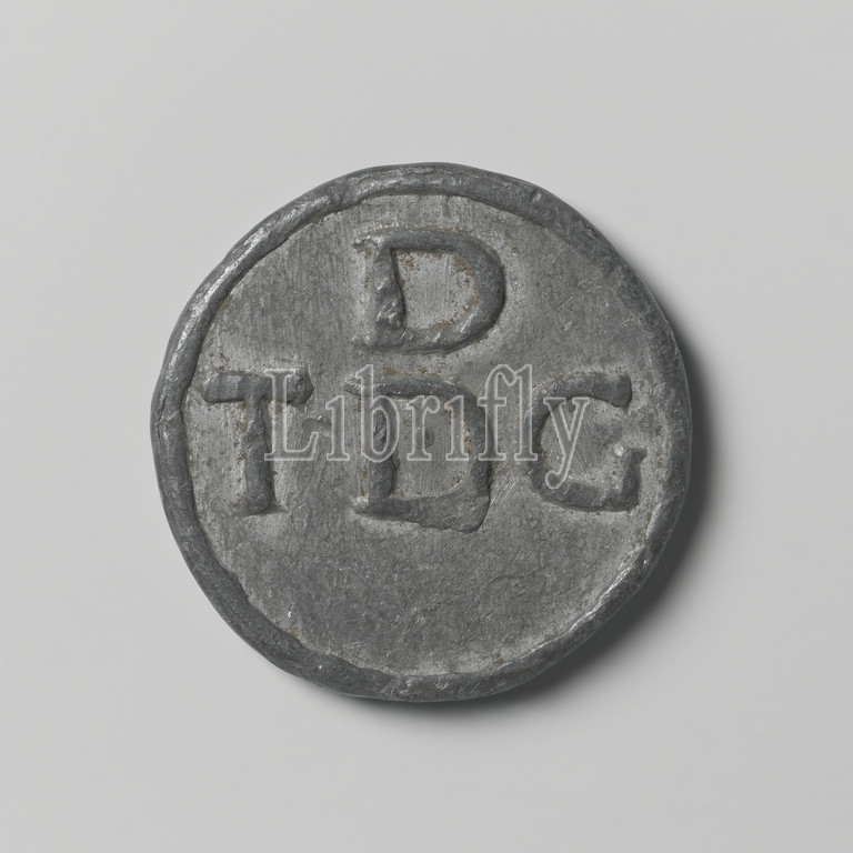 Peat Carrier Guild of Amsterdam, attendance token with letter D and number 92, lead medal. Obverse: digit 92. Reverse: letters T, D and G, under D: letter D, Amsterdam, anonymous, c. 1400 - c. 1885, engraving, d 3.1 cm × w 23.57 gr
