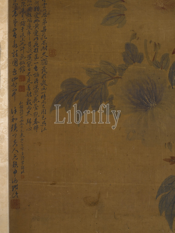 Peonies, Rock, Lu Hui, Chinese, Qing dynasty, period, Daoguang, 1840, ink, color, silk, 42-1/8 x 21-3/8, image, 53-1/2 x 28, installed, Asian Art