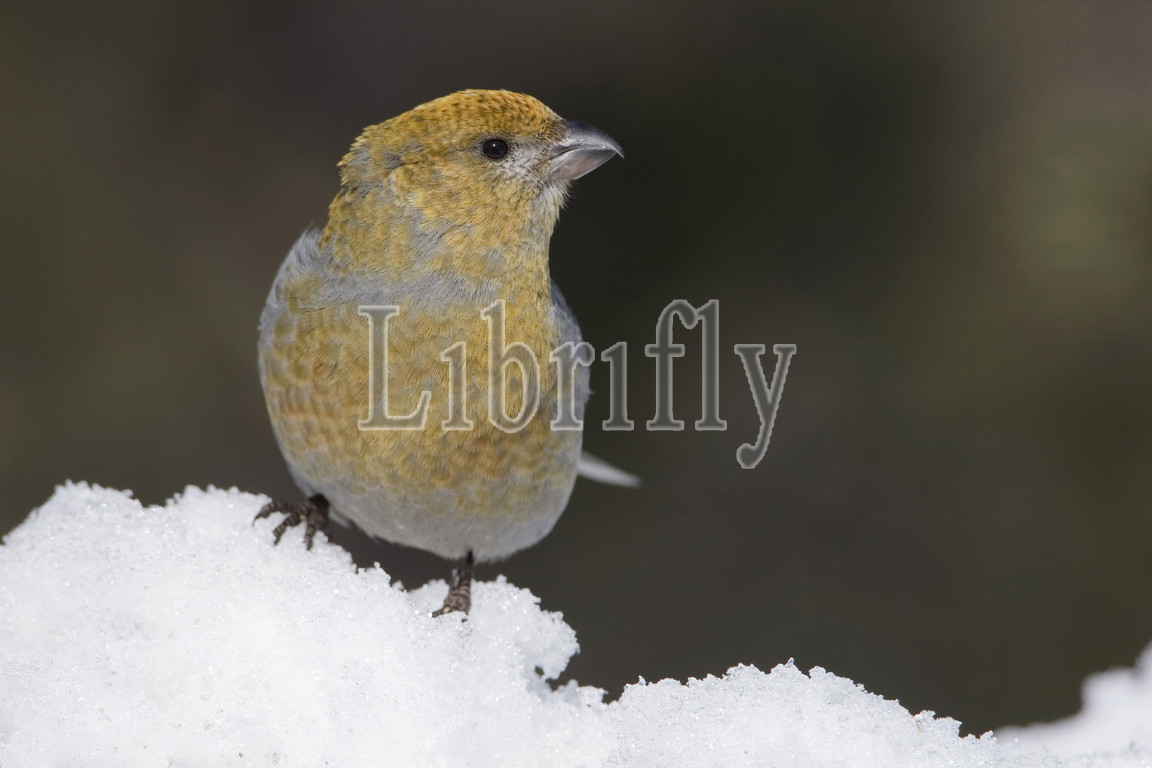Perched, Female, Pine Grosbeak, snow, Pinicola enucleator, Finland, nature, bird, animal, wildlife, wild, fauna, natural, feather, sky, beak, wing, outdoor, freedom, colourful, Liszt, Natural History, ornithology, vertebrate animals, photography, color image