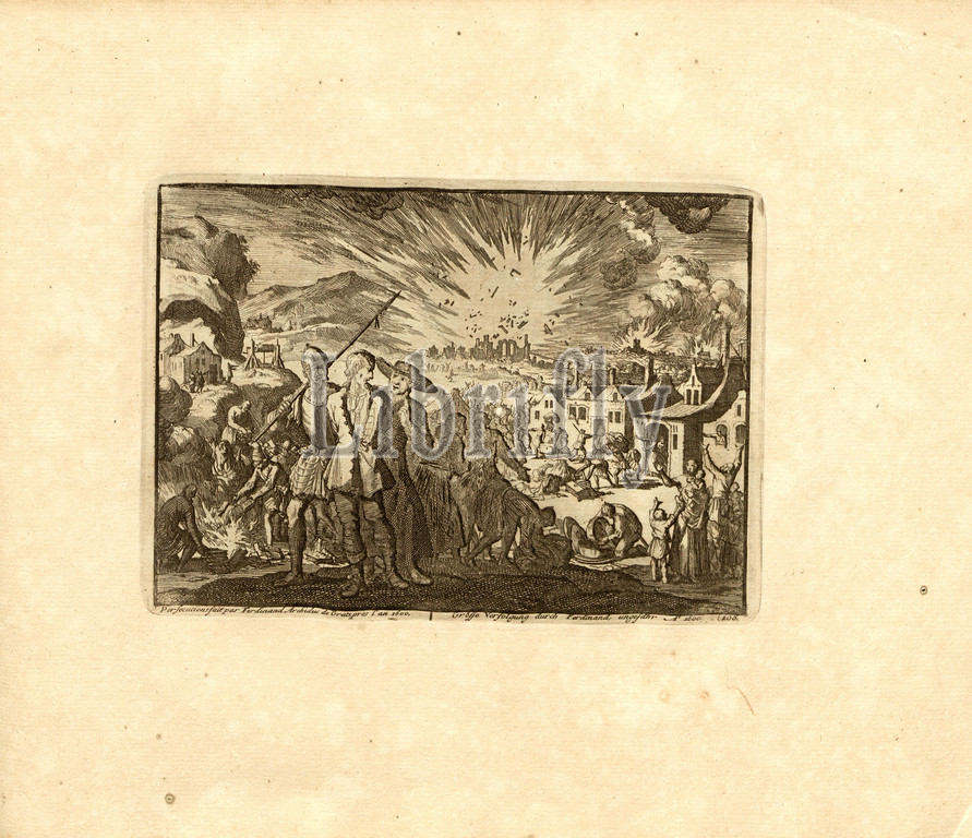 Persecutions made by Ferdinand Archiduc de Grat, near the year 1600, Parallel Title: Great Persecution by Ferdinand, about A nn o 1600, copperplate engraving, 106.), p. 221, Luyken, Jan (inv. et fec.), Jan Luyken: Théâtre des martyrs: depuis la mort de J.Christ jusqu'à present: représenté en très belles tailles-douces = Schau-Bühne der Martyrer; gezeichnet und in Kuppfer gestochen. Leyde: chez Pierre Van der Aa, [1711]