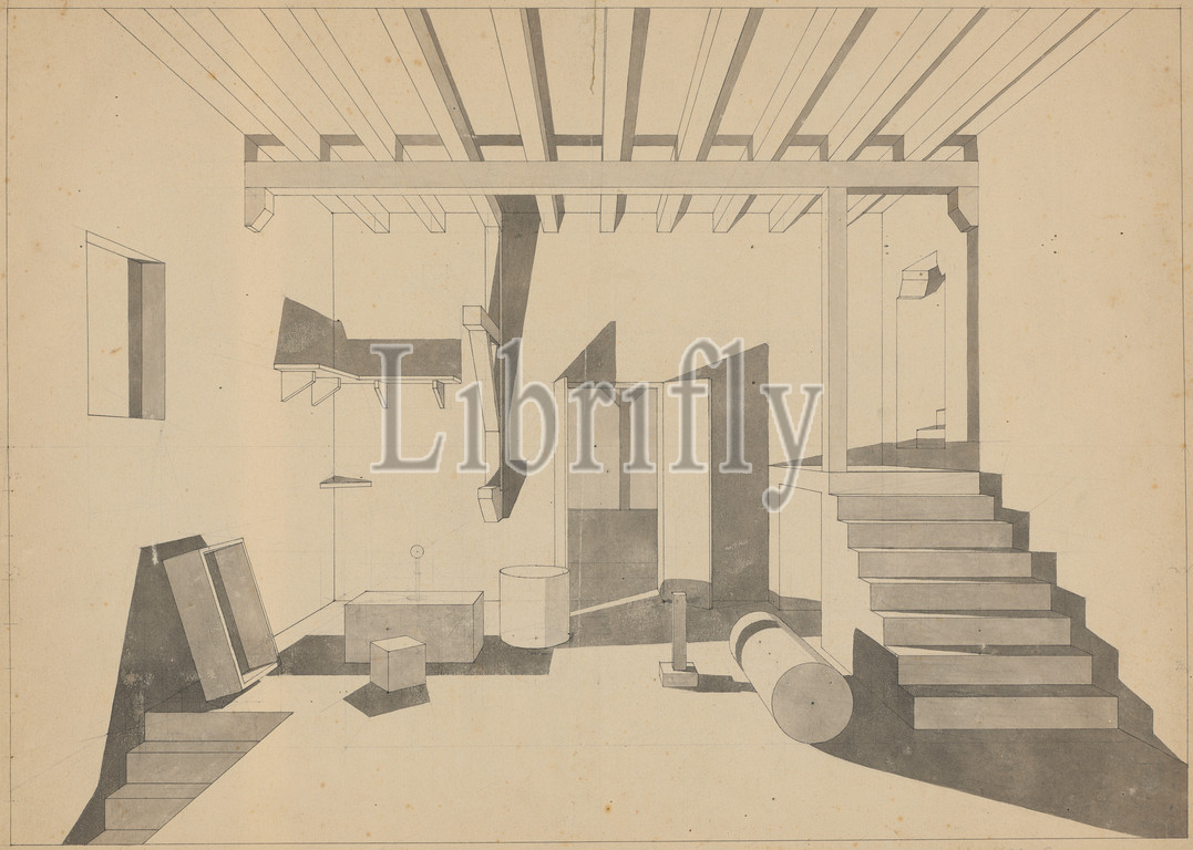 Perspective drawing, interior, window, open door, look, arbor, pen, ink, pencil, single-line rectangle edging, sheet, 33.3 x 45.5 cm, U. r., Signed, Kelterborn, Ludwig Adam Kelterborn, Hannover 1811–1878 Basel