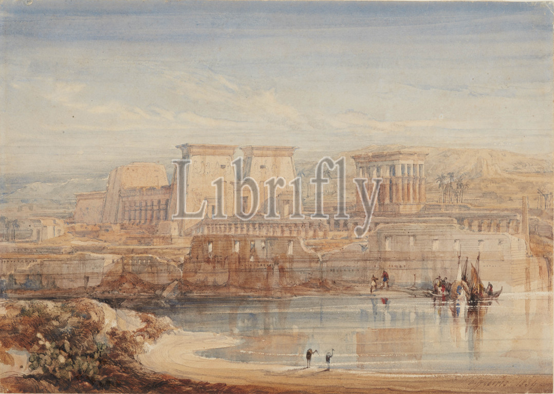 Philae: A View of the Temples from the South, David Roberts (Scottish, 1796-1864), 1839, watercolor and gouache on white paper, 8-3/4 x 12-1/2 in., signed and dated in ink, LR: D. Roberts 1834