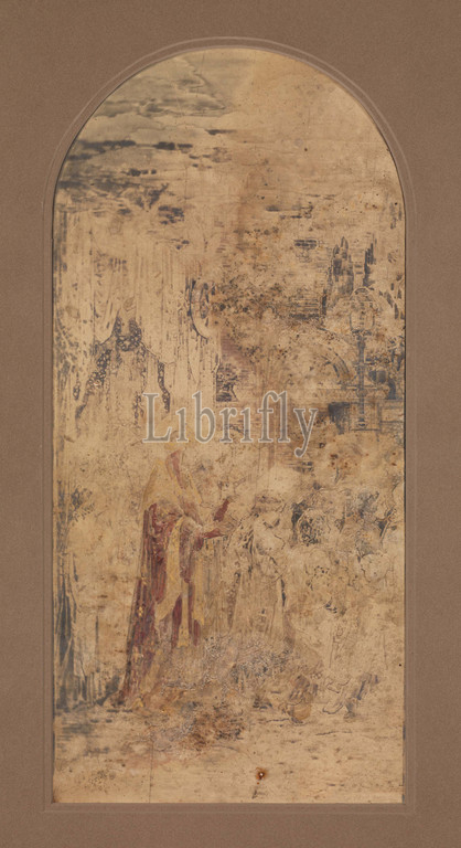 Photograph, design, single mosaic panel, Te Deum Laudamus, triptych, ca, 1922–23, New York, United States, American, Photostat, watercolor highlights, Overall, 24 1/2 x 13 5/8, 62.2 34.6 cm, Drawings, Tiffany Studios, 1902–32