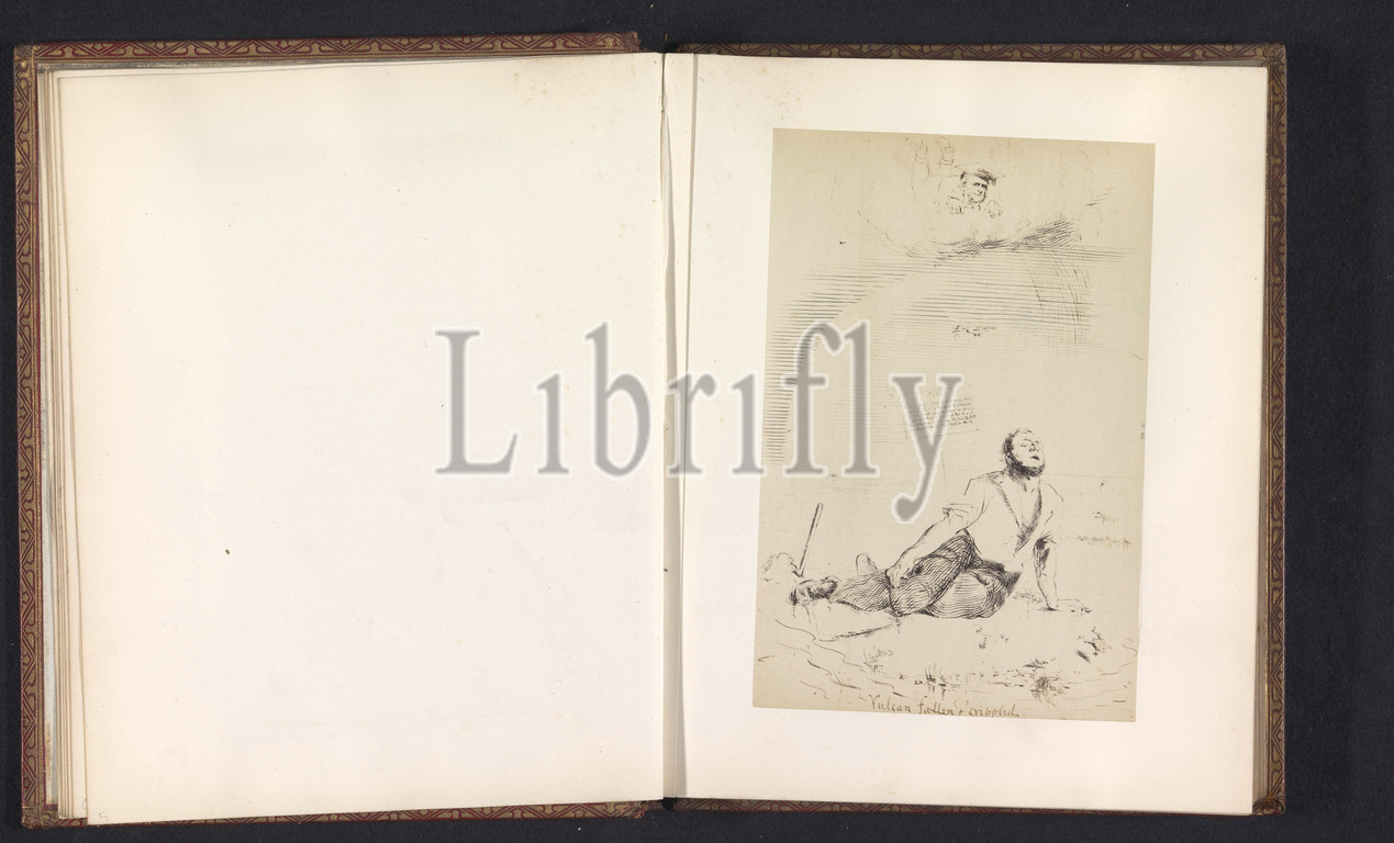 Photoreproduction of a drawing, depicting a mechanic of the Great Western Railway as Vulcan after the fall of Olympus, anonymous, intermediary draughtsman: anonymous, c. 1855 - in or before 1866, photographic support, albumen print, height 198 mm × width 131 mm