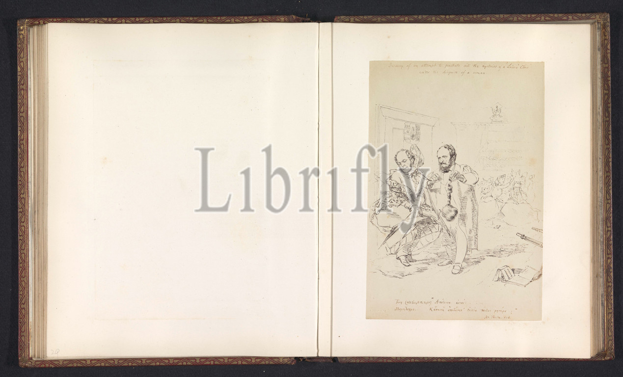 Photoreproduction, drawing, depicting, rector, Lincoln discovering, presence, Reverend T, H, Sheppard, dressed, woman, class, women, anonymous, intermediary draughtsman, anonymous, c, 1855, 1866, photographic support, albumen print, height 197 mm, width 134 mm