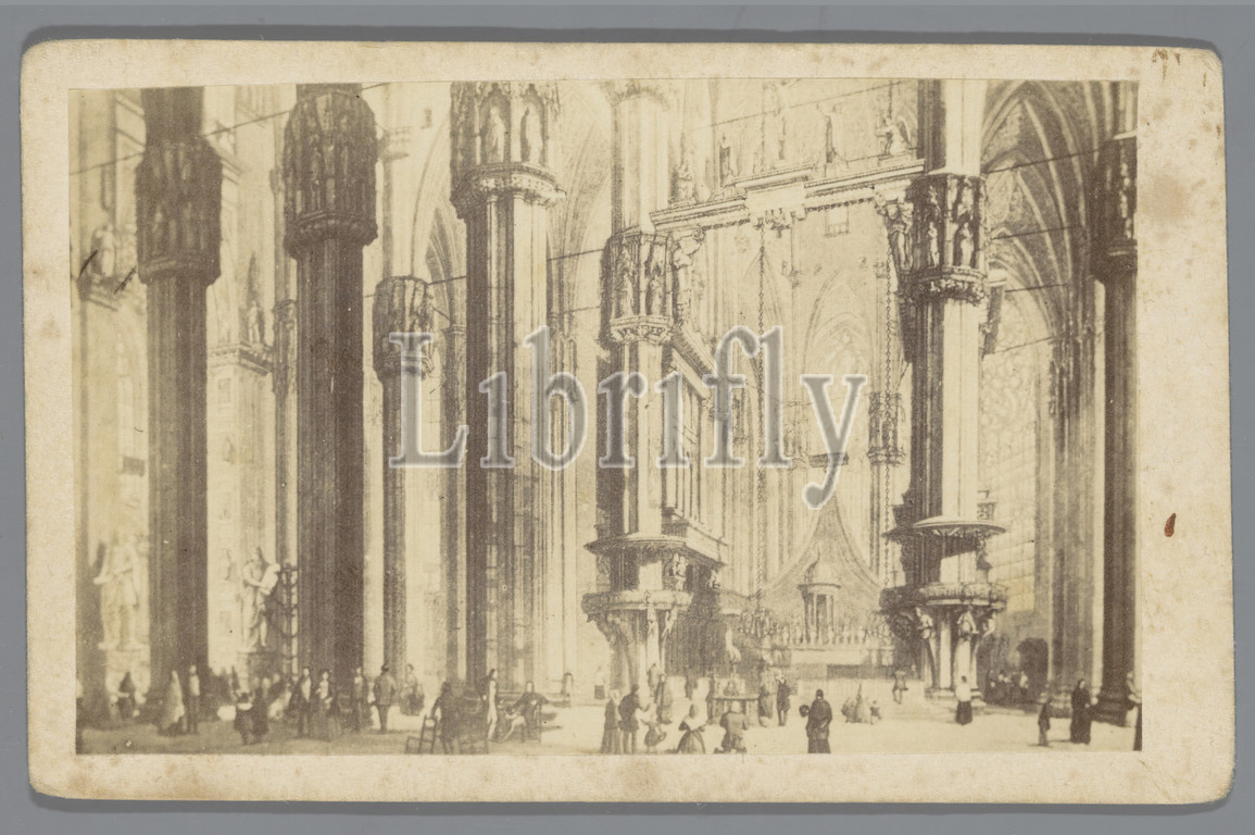 Photoreproduction, drawing, interior, Duomo, Milan, Interno del Duomo di Milano, anonymous, intermediary draughtsman, anonymous, 1855, 1885, cardboard, paper, albumen print, height 64 mm, width 101 mm