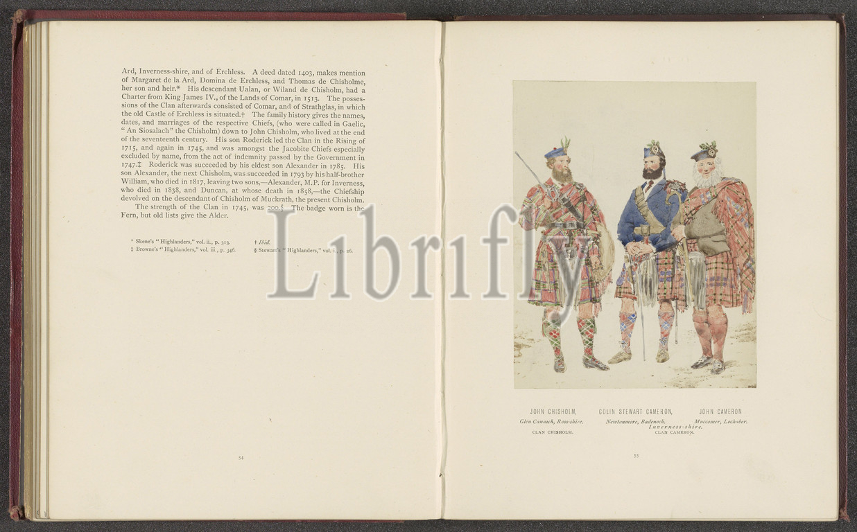 Photoreproduction of a drawing of portraits of John Chisholm of Clan Chisholm and Colin Stewart Cameron and John Cameron of Clan Cameron, John Chisholm, Glen Cannuch, Ross-shire, Clan Chisholm. Colin Stewart Cameron, Newtonmore, Badenoch. John Cameron Muccomer, Lochaber. Iverness-shire. Clan Cameron (title on object), Day & Son Vincent Brooks, intermediary draughtsman: Kenneth Macleay, c. 1860 - in or before 1870, photographic support, albumen print, height 128 mm × width 100 mm