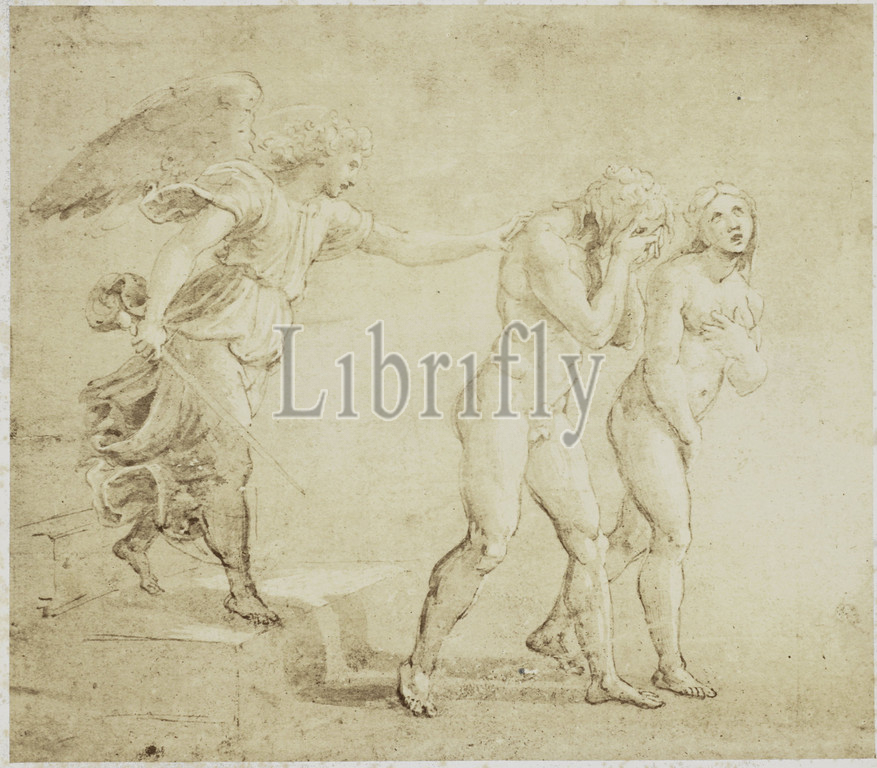 Photoreproduction, drawing, Raphael, Expulsion, Adam, Eve, Paradise, Charles Thurston Thompson, mentioned, intermediary draughtsman, Rafaël, mentioned, Windsor Castle, c, 1852, 1857, paper, albumen print, height 235 mm, width 270 mm
