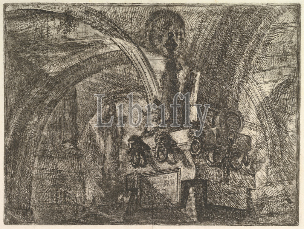 Pier, Lamp, Carceri d'invenzione, Imaginary Prisons, ca, 1749–50, Etching, engraving, sulphur tint, open bite, burnishing, first state, seven, Robison, Sheet, 19 7/16 x 25, 49.4 63.5 cm, Prints, Giovanni Battista Piranesi, Italian, Mogliano Veneto, 1720–1778, Rome