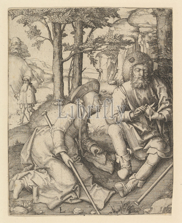 Pilgrims, ca, 1508, Engraving, sheet, 5 15/16 x 4 11/16, 15.1 11.9 cm, cut, picture line, except lower right, slightly cut, Prints, Lucas van Leyden, Netherlandish, Leiden ca., 1494–1533, Leiden