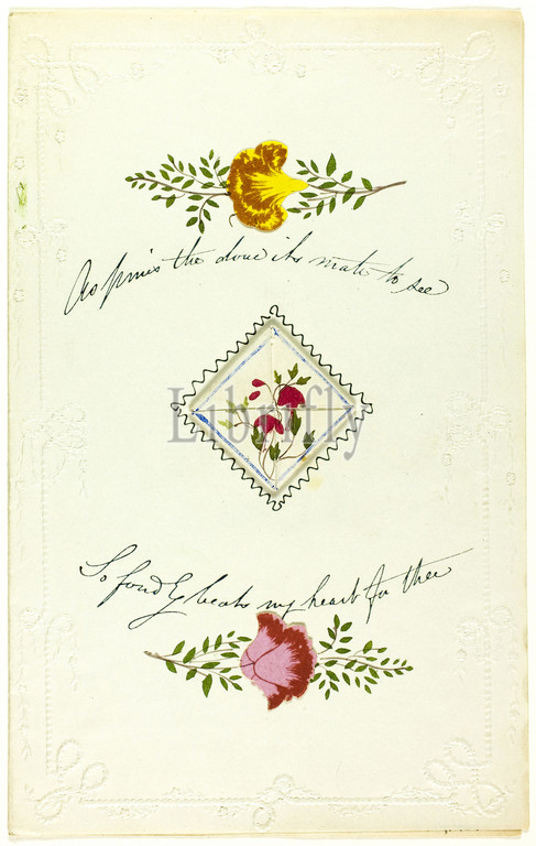 Pines, Dove 's Mate, See, valentine, c. 1850, George Kershaw, English, 19th century, England, Collage, watercolor, pen, black ink, embossed ivory wove paper, 180