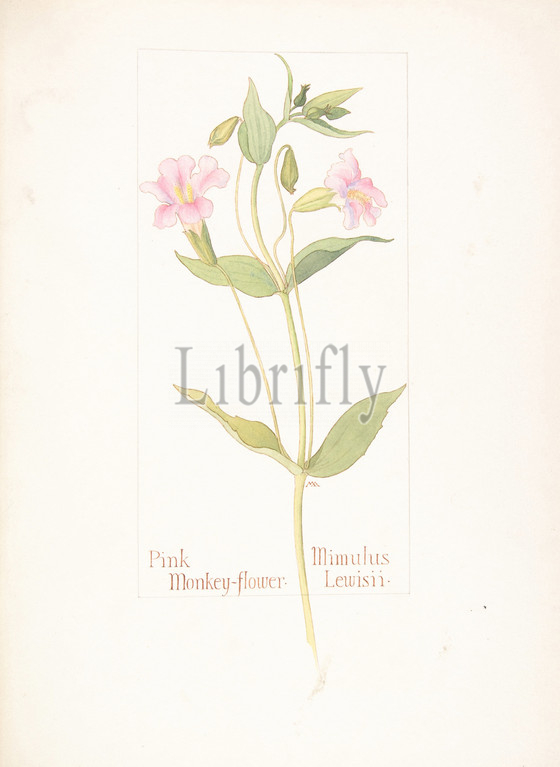 Pink Monkey-flower, Mimulus Lewisii, July 16, 1912, Watercolor, brown ink, graphite, page design indicated, sheet, 13 11/16 x 9 15/16, 34.8 25.2 cm, Drawings, Margaret Neilson Armstrong, American, New York, 1867–1944