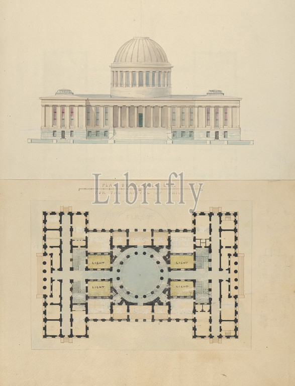 Plan, T, Cole, Esq, Capitol, Ohio, ca, 1839, Watercolor, ink, graphite, sheet, 16 7/8 x 12 3/8, 42.8 31.5 cm, Drawings, Alexander Jackson Davis, American, New York, 1803–1892, West Orange, Jersey
