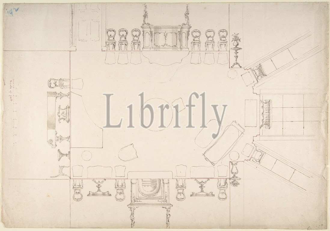 Plan, Elevations, Music Room, early 19th century, Ink, graphite, watercolor, sheet, 11 15/16 x 17 1/16, 30.3 43.4 cm, Anonymous, British, 19th