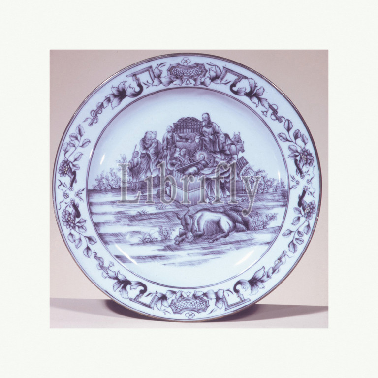 Plate, ca, 1750–60, Chinese, European market, Hard-paste porcelain, Diameter, 8 3/4, 22.2 cm, Ceramics-Porcelain-Export, Based on an engraving by Jan Luyken, Dutch, Amsterdam, 1649–1712