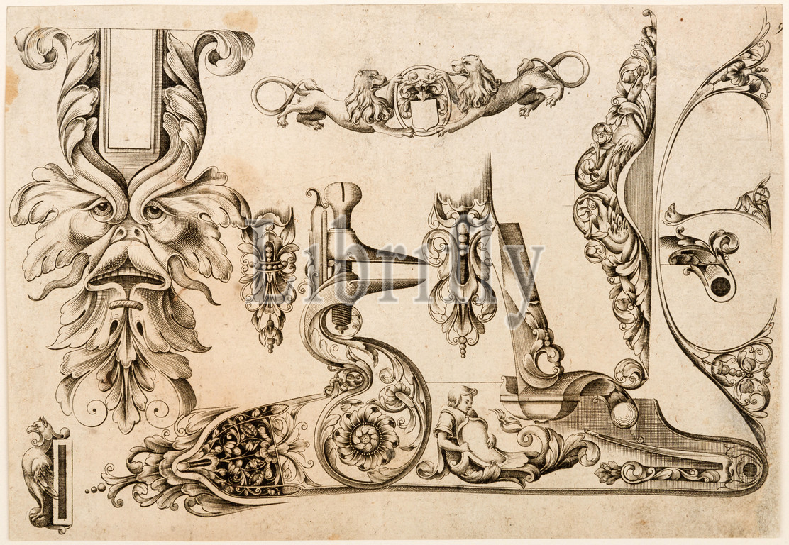 Plate Nine, Plusieurs Models des plus nouuelles manieres qui sont en usage l, ca, 1660, Paris, French, Engraving, sheet, 7 1/8 x 5, 18.1 5 cm, Works, Paper-Engravings, Little, royal gunmakers, Thuraine, Le Hollandois, published, pattern book, sheet comes, remains, rare, important document, Parisian gunmaking, leading style, firearms ornament early, reign, Louis XIV