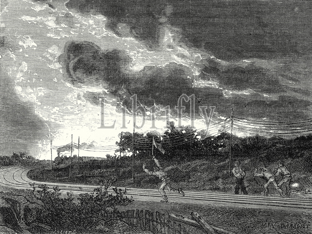 trackman, platelayer, cantonnier, railway employees, alarm signal, train, prevent, accident, train, transport, travel, track, transportation, rail, railroad, traffic, railway, techlogy, mechanical, 19th century, people, reparation works, 19th century engraving, old print, steam, age of steam, train, transport, travel, track, transportation, rail, railroad, traffic, railway tracks, railroad tracks, steam locomotive, train, approaching train, danger, vintage, old print, 19th century, victorian, retro, quint, lox, engraving