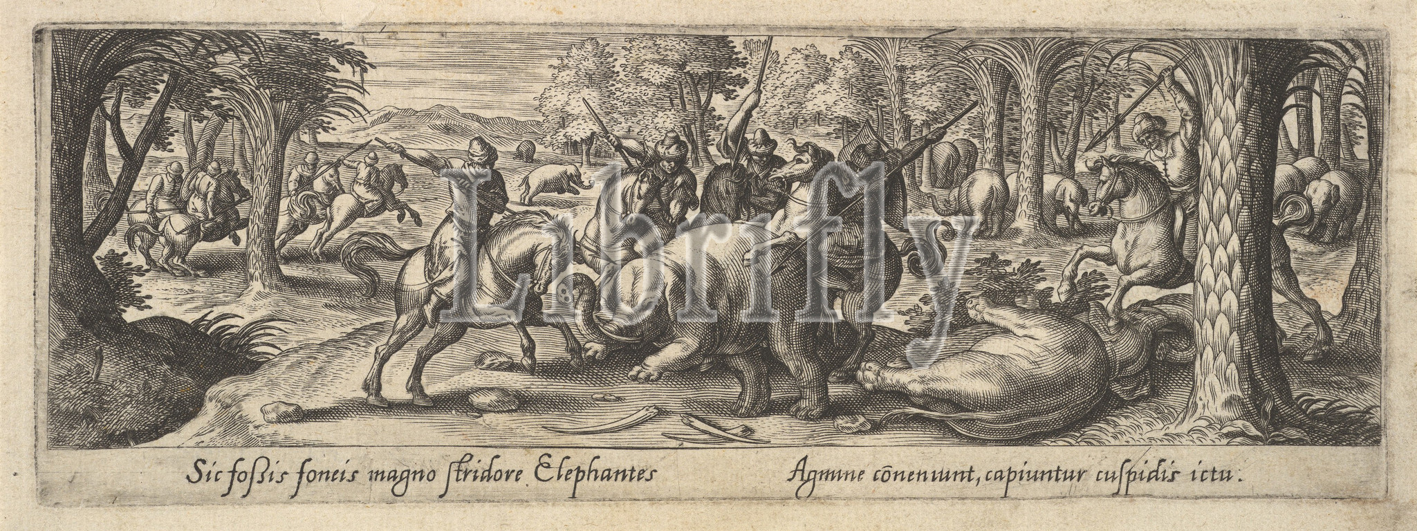 1 of 8 plates on Hunting and Fishing, Engraving, Plate: 3 1/16 x 8 11/16 in. (7.7 x 22 cm), Prints, After Hans Bol (Netherlandish, Mechelen 1534–1593 Amsterdam)