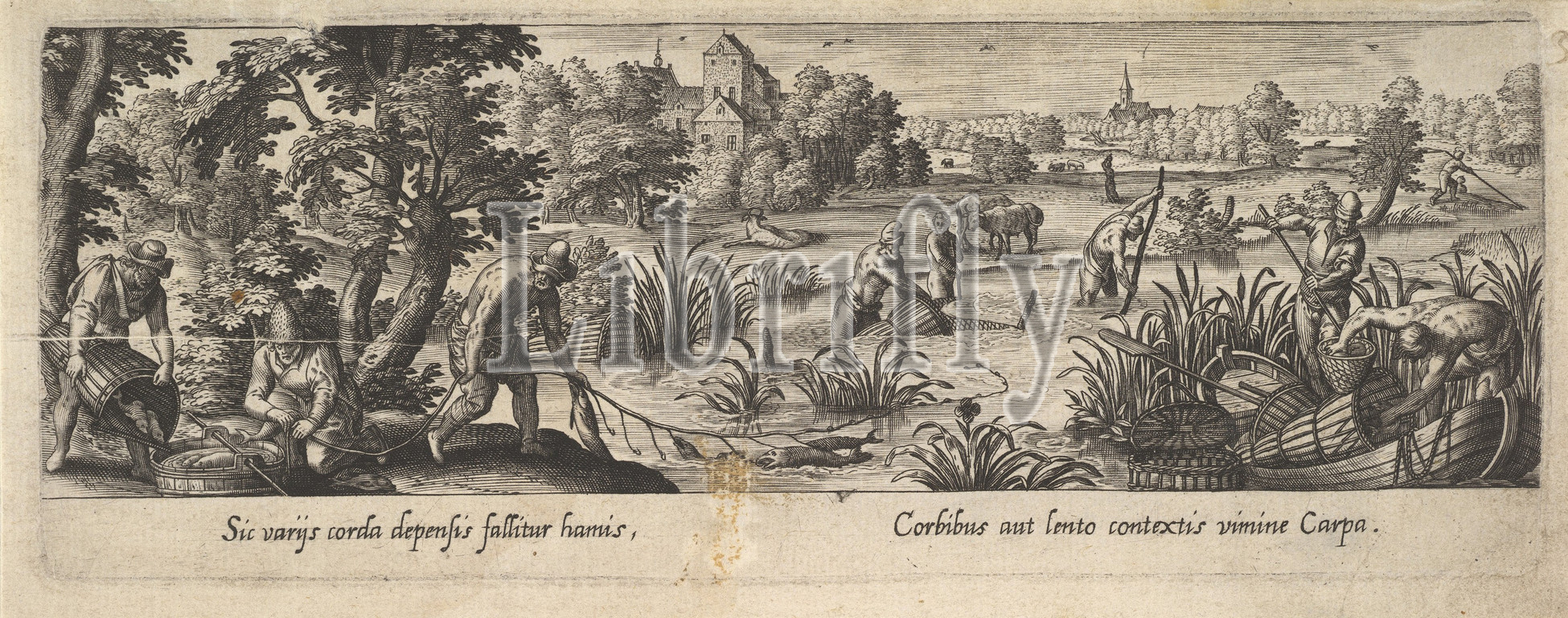 1 of 8 plates on Hunting and Fishing, Engraving, Plate: 3 1/8 x 8 7/16 in. (8 x 21.5 cm), Prints, After Hans Bol (Netherlandish, Mechelen 1534–1593 Amsterdam)
