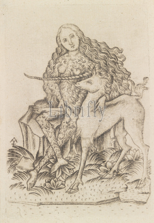 Playing Card, with Wild Woman and Unicorn, 15th century, Engraving; second state, Sheet: 4 1/8 x 2 7/8 in. (10.5 x 7.3 cm), Prints, Master ES (German, active ca. 1450–67)
