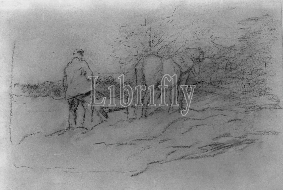 Ploughing, Anton Mauve, Dutch, 1838-1888, Charcoal drawing, wove paper, Netherlands, Sheet, 9 13/16 x 13 1/4, 25 x 33.7 cm