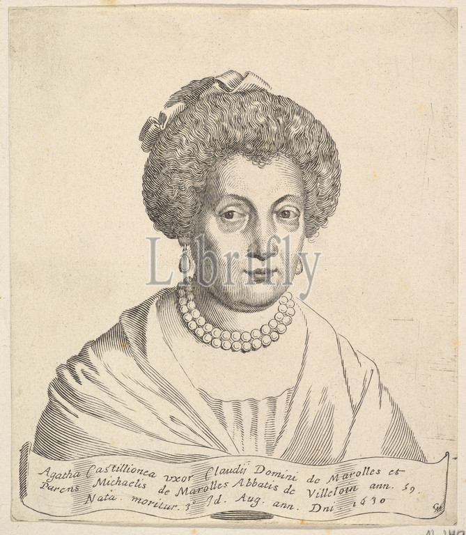 Portrait, Agathe de Châtillon, Engraving, first state, sheet, 6 1/4 x 5 7/16, 15.8 13.8 cm, Prints, Claude Mellan, French, Abbeville, 1598–1688, Paris