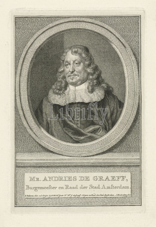 Portrait, Andries de Graeff, Amsterdam mayor, council, city, Andries, Graeff, oval, portrait rests, plinth, name, information, two lines, Dutch, Historical persons, Jacob Houbraken, mentioned, object, Amsterdam, 1749, 1780, 1796, paper, engraving