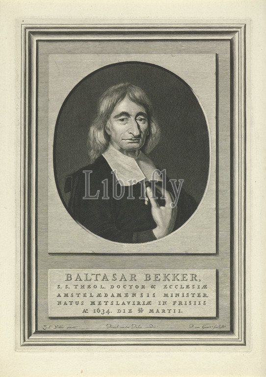 Portrait, Balthasar Bekker, Dutch pastor, theologian Balthasar Bekker, oval, portrait, name, information, five lines, Latin, historical persons, Pieter van Gunst, mentioned, object, Amsterdam, 1673, c, 1714, paper, engraving, w 210 mm × h 290 mm