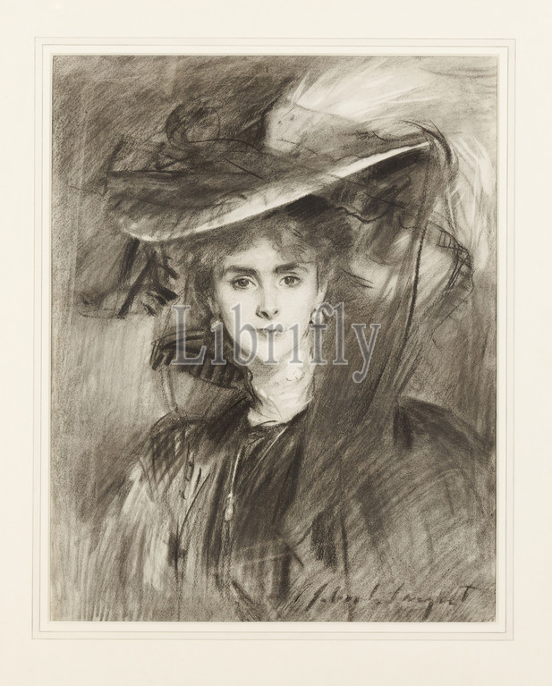 Portrait of the Baroness de Meyer (1872?-1929), 1900-1910 John Singer Sargent (d.1925), Drawing, Portrait, Charcoal, Female, Costume, Hat