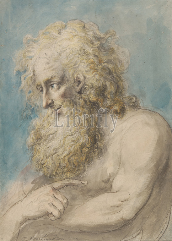 Portrait of a Bearded Man, Thomas Rowlandson, 1756–1827, British, undated, Watercolor, with pen and brown ink, gouache and graphite on medium, moderately textured, cream, laid paper, Sheet: 11 3/16 × 8 1/16 inches (28.4 × 20.5 cm), Contemporary drawn border: 12 7/16 × 9 5/16 inches (31.6 × 23.7 cm), and Mount: 16 5/16 × 12 11/16 inches (41.4 × 32.2 cm)