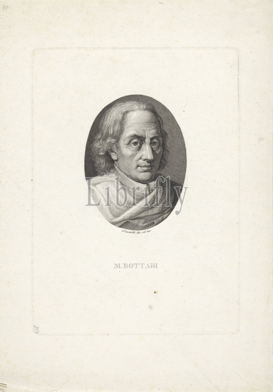 Portrait of M. Bottari Portraits of famous Italians in ovals (series title), historical persons, M. Bottari, Antonio Locatelli (mentioned on object), Italy, 1800 - 1899, paper, engraving, h 208 mm × w 150 mm