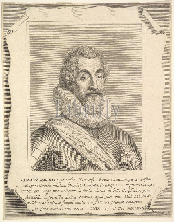 Portrait, Claude de Marolles, Engraving, second state, two, BN, sheet, 9 3/8 x 7 5/16, 23.8 18.6 cm, Prints, Mellan, French, Abbeville, 1598–1688, Paris