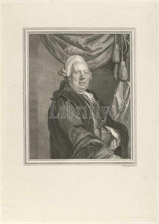 Portrait of David Ruhnken, Portrait of the philologist David Ruhnken, half-length. He is standing by a curtain and has put his left hand in his gown. With an empty margin, David Ruhnken, Pieter Hendrik Jonxis (mentioned on object), Utrecht, 1792, paper, engraving, h 370 mm × w 261 mm
