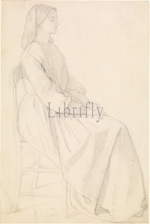 Portrait, Elizabeth Siddal, 1854 Dante Gabriel Rossetti, Drawing, Furniture, Chair, Pencil, Pre-Raphaelite, Female, Seated