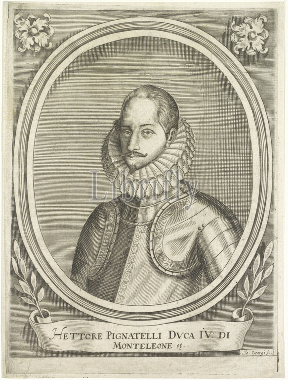 Portrait, Ettore Pignatelli IV, duke, Monteleone, Top left, top right, coat, arms, historical persons, ruler, sovereign, Ettore IV Pignatelli, Giovanni Georgi, mentioned, object, Italy, 1600, 1699, paper, engraving