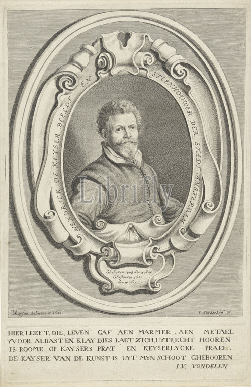 Portrait, Hendrik de Keyser, architect, sculptor, Amsterdam, oval frame, scrollwork, portrait, self-portrait, I, Jonas Suyderhoef, mentioned, object, Haarlem, 1623, 1686, paper, engraving