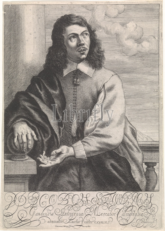 Portrait, Jacob Stoopius, Half-length portrait, Antwerp merchant, calligrapher Jacob Stoopius, standing, balustrade, image, two-line Latin text, portrait, self-portrait, painter, Theodorus van Kessel, 1630, 1660, paper, engraving