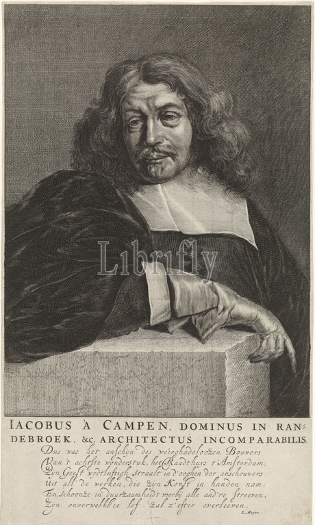 Portrait, Jacob van Campen, architect, Amsterdam city hall, margin, Dutch poem, Abraham Lutma, Amsterdam, c, 1650, paper, engraving