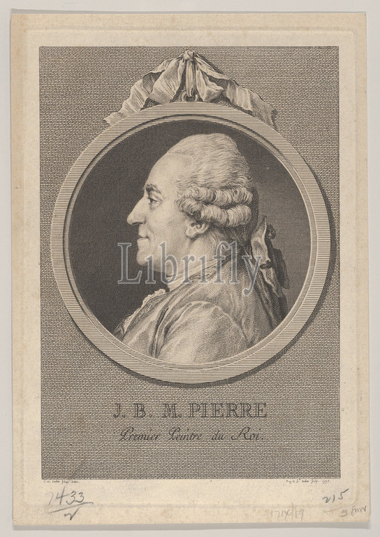 Portrait, Jean-Baptiste-Marie Pierre, 1775, Etching, engraving, third state, three, Bocher, Sheet, 8 1/8, 5 11/16, 20.6, 14.4 cm, Prints, Augustin de Saint-Aubin, French, Paris, 1736–1807, After Charles Nicolas Cochin II, 1715–1790