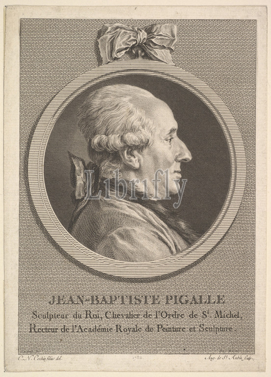 Portrait, Jean-Baptiste Pigalle, 1782, Etching, engraving, third state, three, Bocher, Sheet, 7 11/16, 5 1/2, 19.5, 14 cm, Prints, Augustin de Saint-Aubin, French, Paris, 1736–1807, After Charles Nicolas Cochin II, 1715–1790