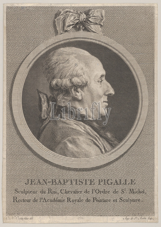 Portrait, Jean-Baptiste Pigalle, 1782, Etching, engraving, third state, three, Bocher, Sheet, 7 3/8, 5 3/16, 18.7, 13.2 cm, Prints, Augustin de Saint-Aubin, French, Paris, 1736–1807, After Charles Nicolas Cochin II, 1715–1790