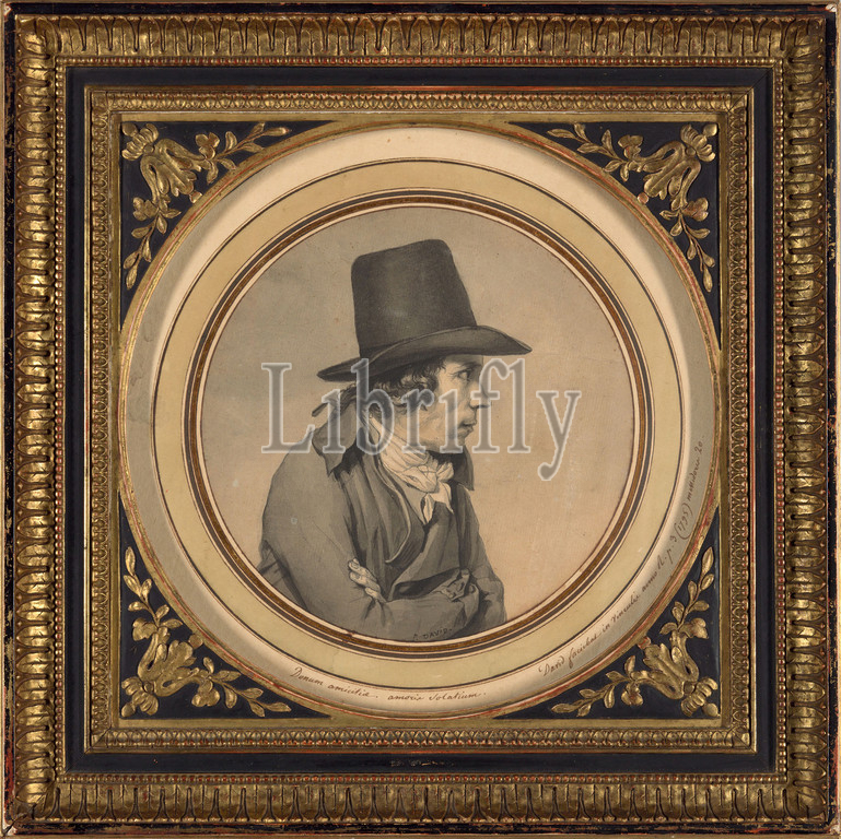 Portrait of Jeanbon Saint-André, 1795, Jacques Louis David, French, 1748-1825, France, Pen and black ink and brush and black ink with yellow ocher watercolor over graphite, on cream laid paper, 183 x 183 mm