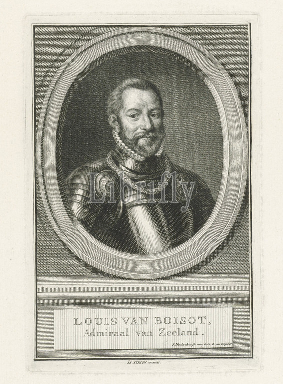 Portrait, Louis de Boisot Louis van Boisot, title, object, Bust, right, Louis de Boisot, oval, Under, portrait, name, two lines, Dutch, Jacob Houbraken, mentioned, Amsterdam, 1749, 1759, 1760, paper, engraving