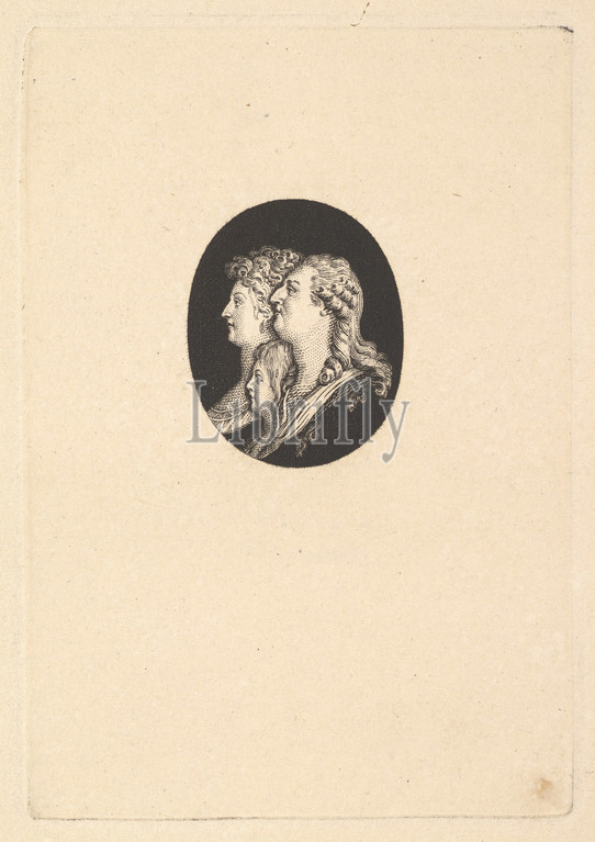Portrait, Louis XVI, Marie Antoinette, Dauphin, ca, 1791, Etching, engraving, Sheet, 8 1/16, 9, 20.5, 23 cm, Augustin de Saint-Aubin, French, Paris, 1736–1807, After Piat Joseph Sauvage, Flemish, Tournai, 1744–1818, Version, reverse, Bocher 149, -151, Pieter, small portrait, meant, mounted, brooch