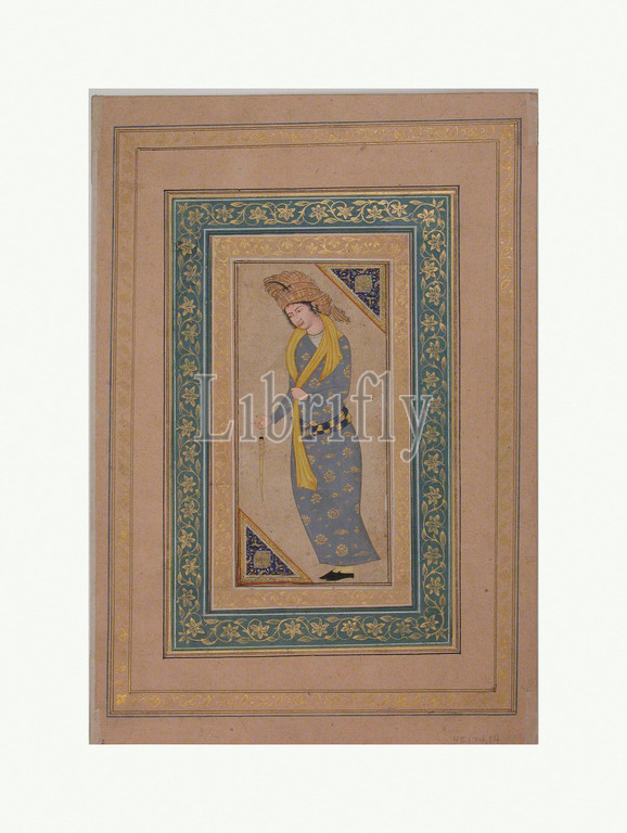 Portrait, Man, early 17th century, Attributed, Iran, Ink, watercolor, gold, paper, H, 2 3/4, 7 cm, Codices