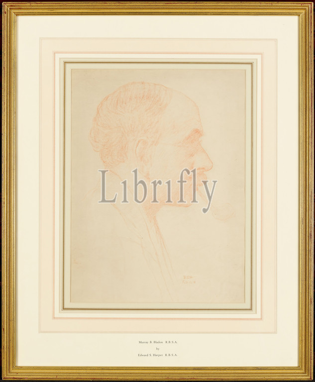 Portrait, Murray Bernard Bladon, 1918 Edward Samuel Harper, d.1941, 20th Century, Drawing, Chalk, Portrait, Frame, Pipe, Works, Paper