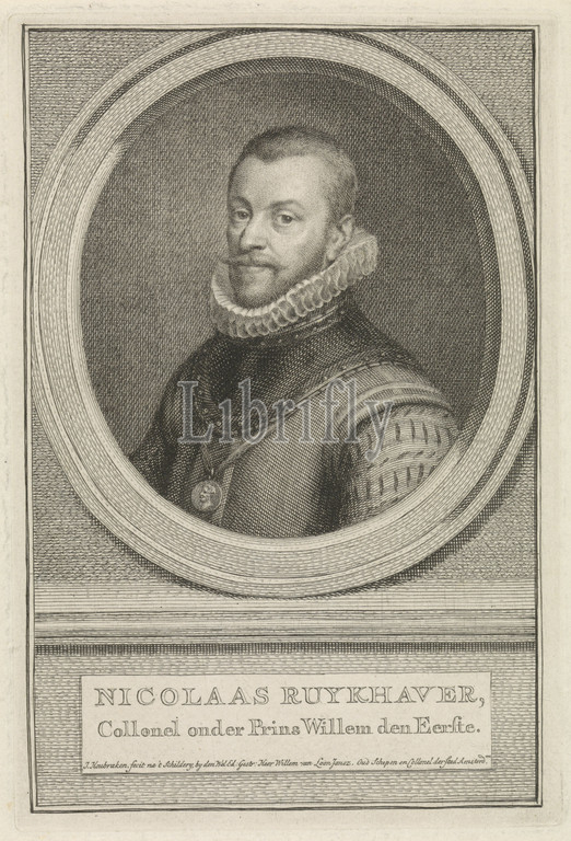 Portrait, Nicolaas Ruychaver Nicolaas Ruykhaver, title, object, Bust, left, Nicolaas Ruychaver, oval, portrait rests, ledge, name, information, written, two lines, Dutch, Jacob Houbraken, mentioned, Amsterdam, 1749, 1759, 1796, paper, engraving