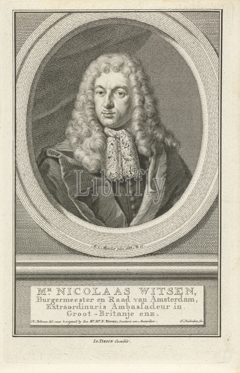 Portrait, Nicolaes Cornelisz, Witsen, historical person, WITSEN, NICOLAES, portrayed alone, mayor, burgomaster, Jacob Houbraken, mentioned, object, Amsterdam, 1749, 1759, paper, engraving