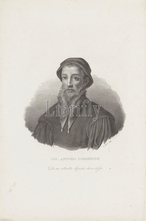 Portrait, painter Giovanni Antonio Pordenone, historical persons, portrait, self-portrait, artist, Pordenone, Giuseppe Guzzi, mentioned, object, Italy, 1834, 1842, paper, engraving