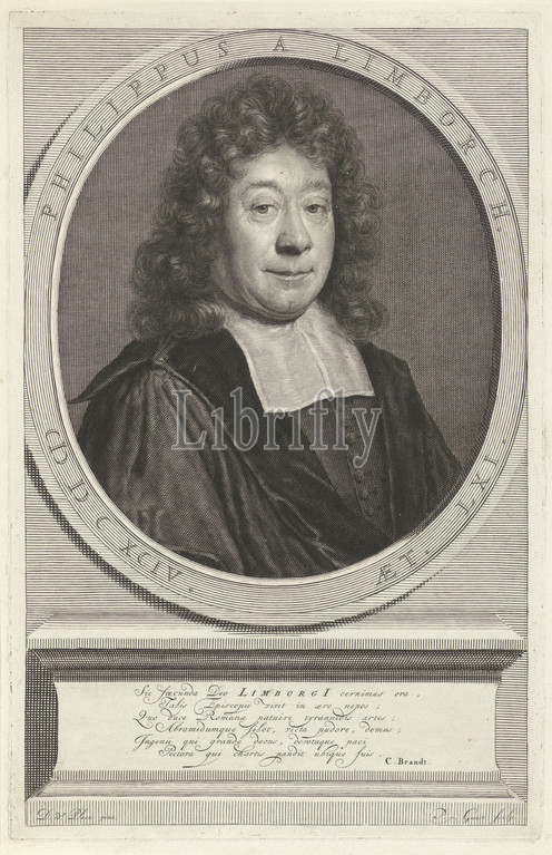 Portrait, Philippus van Limborch, age, 61, Amsterdam pastor, professor, remonstrants, print, Latin caption, life, Pieter van Gunst, mentioned, object, Amsterdam, 1695, 1731, paper, engraving